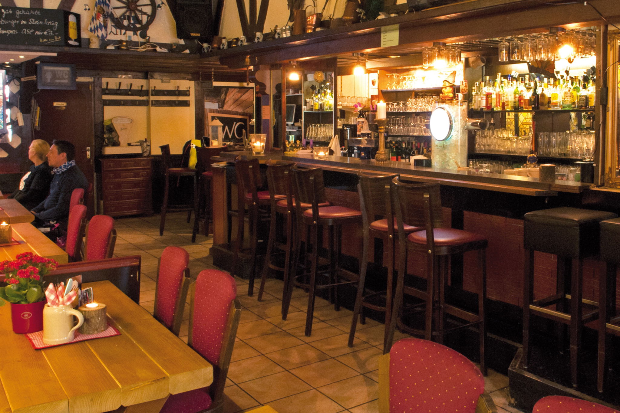 Wer bei schönem Wetter kommt kann draußen sitzen: Es gibt eine Terrasse und Biergarten mit rustikalen Garnituren in Grün- und Lahn- Nähe- ideal für ein Bier und entspanntes Essen